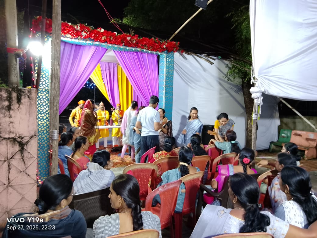 वणी :न्यू युवा महिला दुर्गा उत्सव मंडळ बँक कॉलनी येथे ता.27/09/25 ला गोंधळाचा कार्यक्रम घेण्यात आला.हिंगणघाट येथील रवि मोरणकर हे कार्यक्रमाचे आकर्षक ठरले. ते आई तुळजा भवानी चे मोठे भक्त असून त्यांनी वणी मध्ये येऊन कार्यक्रम संपन्न केला आहे व सोबतच रांगोळी स्पर्धेचे पण आयोजन केले गेले. मांडलाच्या अध्यक्षा सौ कुंदा मोरेश्वर सावसाकडे,उपाध्यक्षा सौ लता पाटणकर,सचिव सौ अमृता संदीप चट्टे यांचे पुढाकाराने कार्यक्रम यशवी झाला. त्या बद्धल त्यांनी सर्व कार्यकर्त्यांचे आभार मानले.